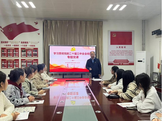 为深入学习贯彻党的二十届三中全会精神,11月14日下午,医学院党委书记兼行政副院长史立军在至善楼8330党员活动室为2024年下半年学院发展对象讲授专题党课。