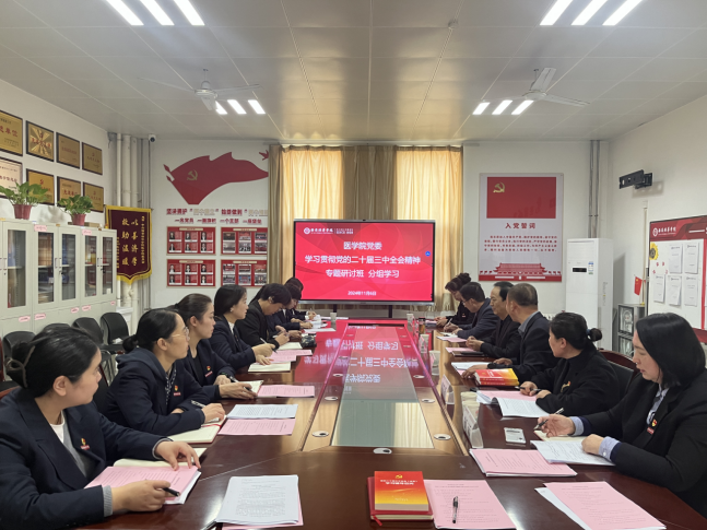 11月6日-11月7日下午,医学院党委在至善楼8330党员活动室组织召开学习贯彻党的二十届三中全会精神专题研讨班分组学习会议,西安培华学院常务副校长胡俊生、医学院领导班子成员、学院党委委员、师生党支部书记、副书记和党外知识分子代表参加学习。会议由党委书记兼行政副院长史立军同志主持。