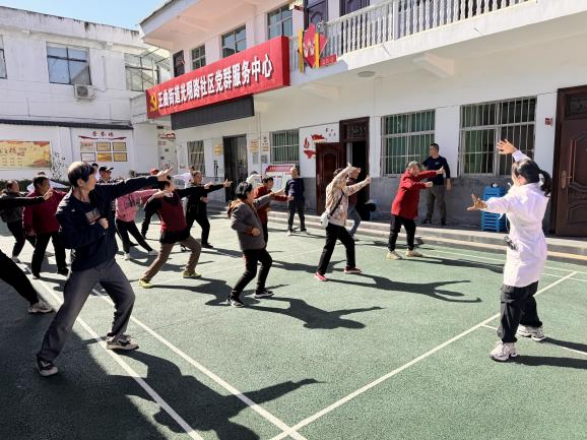 为了帮助社区老人强身健体,增强骨骼健康,唐必欢老师为社区老人现场教学传统中医养生功法“八段锦”,并组织现场老人一起学习,老人们积极参与,现场学习气氛火热。