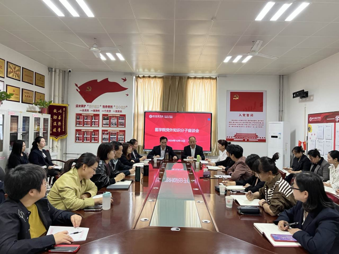 2024年10月14日上午,医学院在至善楼8330党团活动室组织召开党外知识分子座谈会,学院领导班子、民盟成员、无党派人士代表、党外知识分子代表参加本次座谈会,会议由学院党委书记兼行政副院长史立军主持。