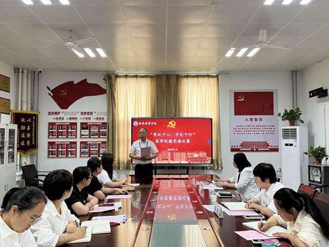 为全面贯彻落实党的二十大精神,深入学习习近平总书记关于党纪学习教育的重要讲话精神,切实通过党纪学习教育,使党员干部筑牢理想信念根基、厚植爱党报国情怀,增强廉洁自律意识。医学院党委于2024年7月5日上午10:00在8330会议室举办“学纪于心、守纪于行”微党课比赛。医学院党委书记兼行政副院长史立军、党委副书记何丽、全体党支部书记、副书记、党务兼行政干事周阿萌参加活动,教工第一党支部牛睿老师出席并担任评委,会议由党委副书记何丽主持。
