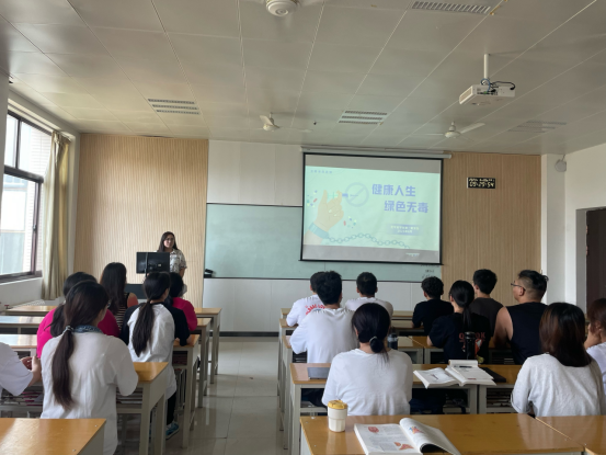 接着,支部书记冯贝以《健康人生绿色无毒》为主题,向大家介绍了新型毒品的概念和种类以及对人体的危害,同时通过案例讲解,向同学们强调毒品的影响和危害性,帮助他们增强自我保护意识。通过讲解,同学们全方位、多层次、多角度地了解了毒品的种类及危害,也进一步认识到了禁毒工作的重要性和打击毒品违法犯罪的必要性。