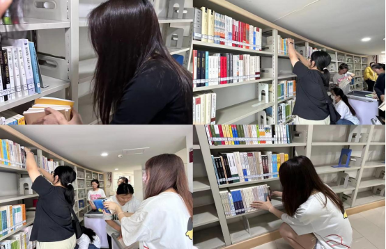 在图书馆负责老师的带领下,志愿者们互相配合、分工合作,对书籍进行拆包装、分类、整理、新书上架分类归置。经过负责老师的耐心指导和志愿者们仔细认真的工作,图书馆恢复井然有序的状态。
