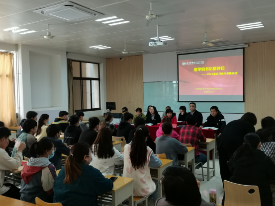 接下来,各专业实习生代表纷纷发言,他们就实习大纲安排、实习具体时间、实习单位信息、各实习单位招聘面试安排、实习生日常管理、住宿问题及自主实习的要求提出疑问。