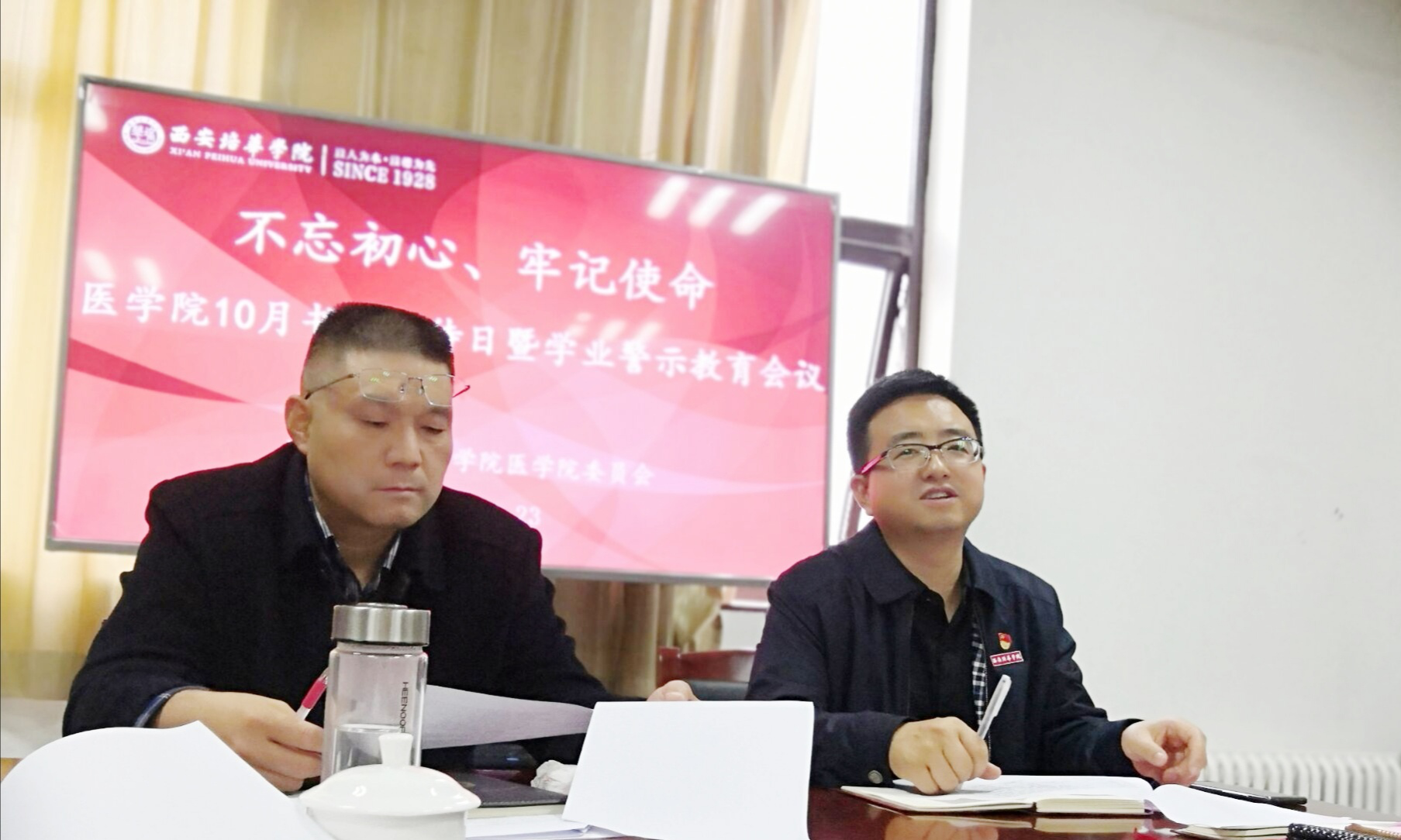 结合“不忘初心、牢记使命”主题教育,为进一步加强学风建设,教育引导学生树立远大理想,坚定理想信念,不断激发学习的积极性和主动性,有效帮扶重点学业困难学生,2019年10月23日下午,中共西安培华学院医学院委在至善楼8330党员活动室开展以“学以修身,学而思进”为主题的10月“书记接待日”暨学业警示教育大会。本次会议由医学院党委书记兼行政副院长姚斌主持,医学院常务副院长王平安、各系领导、专业带头人、教师及辅导员代表、35名重点学业困难学生等参加了会议。