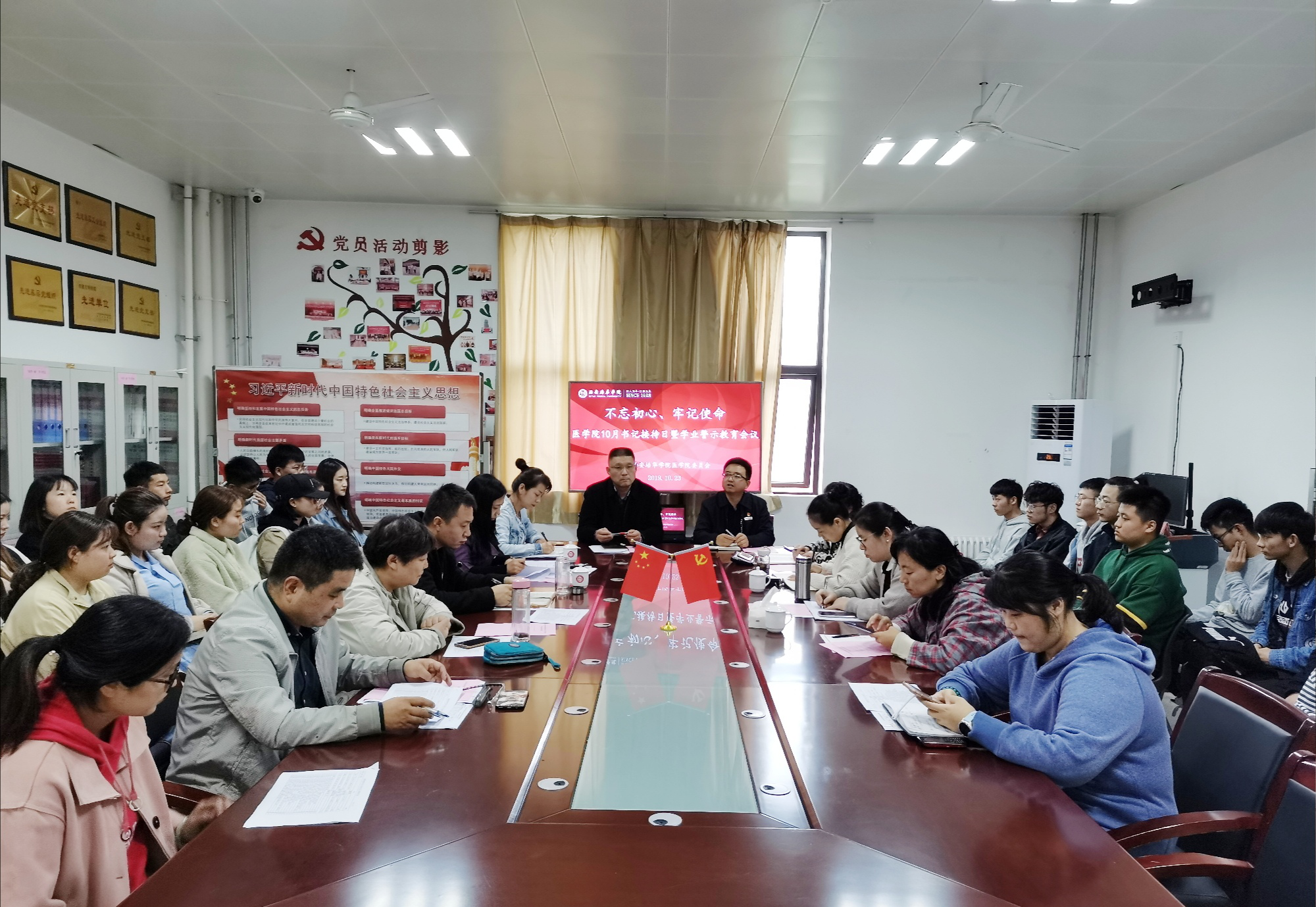 结合“不忘初心、牢记使命”主题教育,为进一步加强学风建设,教育引导学生树立远大理想,坚定理想信念,不断激发学习的积极性和主动性,有效帮扶重点学业困难学生,2019年10月23日下午,中共西安培华学院医学院委在至善楼8330党员活动室开展以“学以修身,学而思进”为主题的10月“书记接待日”暨学业警示教育大会。本次会议由医学院党委书记兼行政副院长姚斌主持,医学院常务副院长王平安、各系领导、专业带头人、教师及辅导员代表、35名重点学业困难学生等参加了会议。