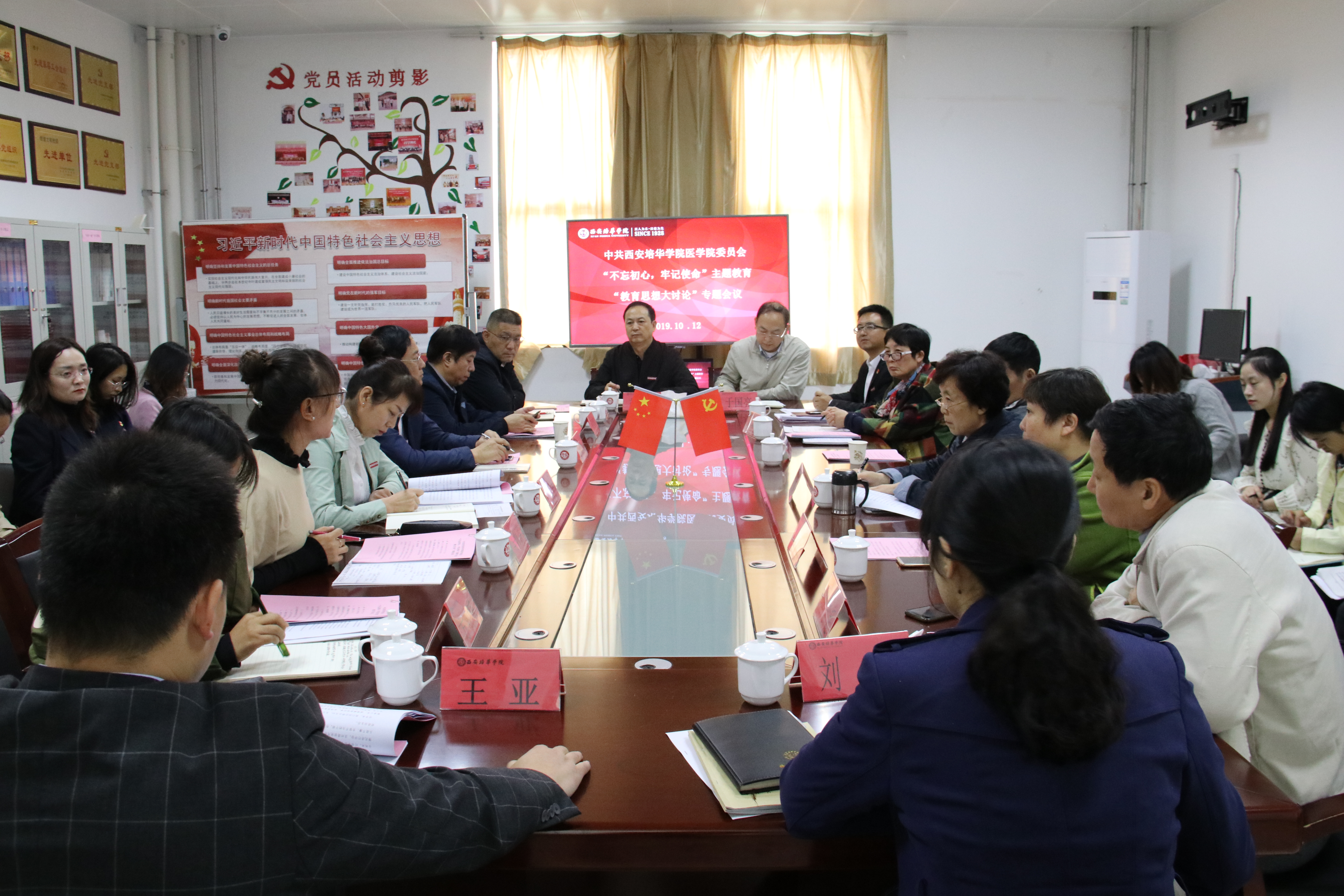 为深入贯彻落实习近平总书记在“不忘初心、牢记使命”主题教育工作会议上的重要讲话精神,聚焦贯彻守初心、担使命,找差距、抓落实的总要求,高标准高质量推进主题教育。2019年10月12日上午9:00,医学院党委在至善楼8330党员活动室召开“不忘初心、牢记使命”教育思想大讨论专题研讨会。校党委书记胡俊生、副校长兼医学院院长于国亮、医学院党委书记姚斌、院领导班子成员、党委委员、各支部书记、骨干教师共计30余人参加了此次专题研讨会。