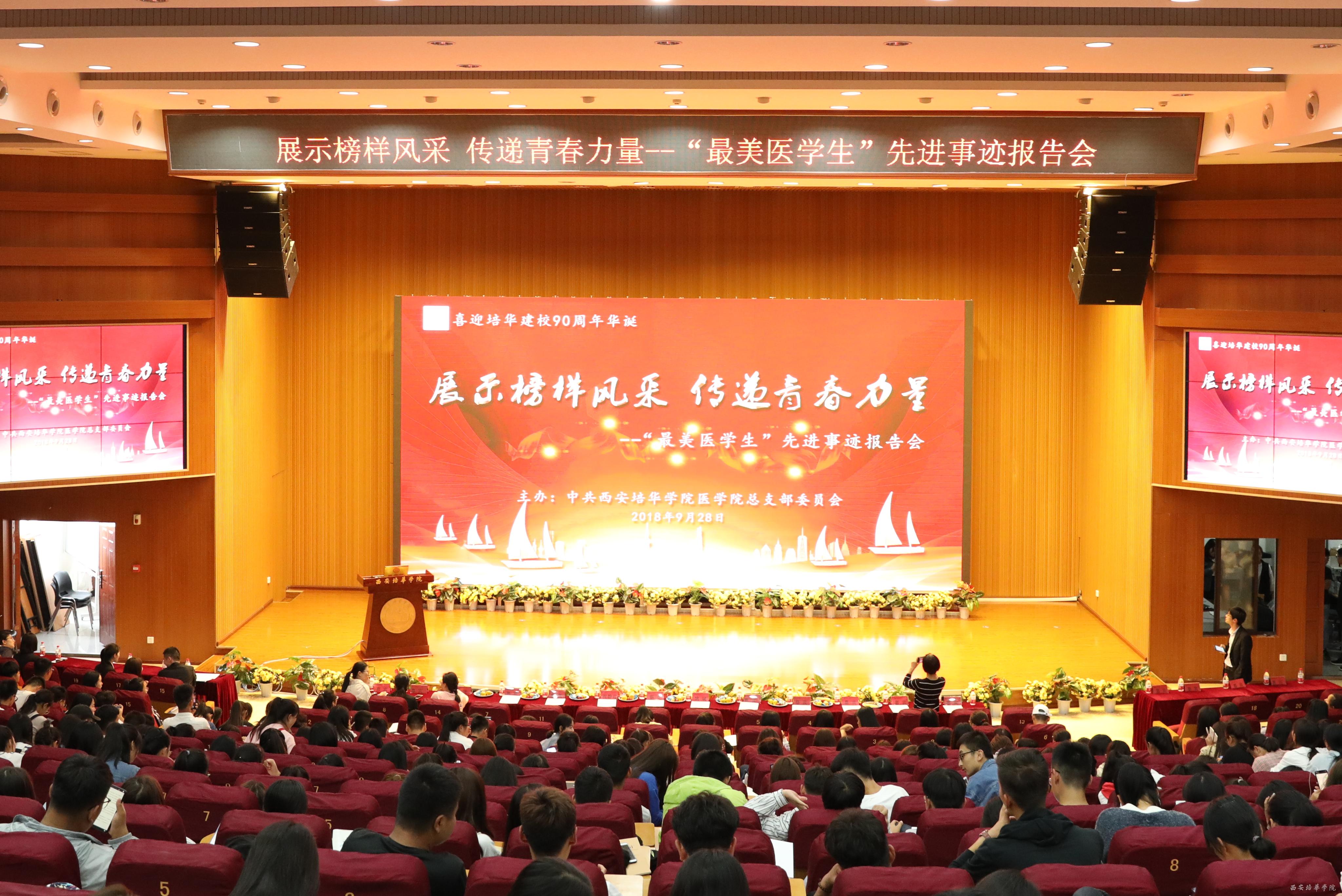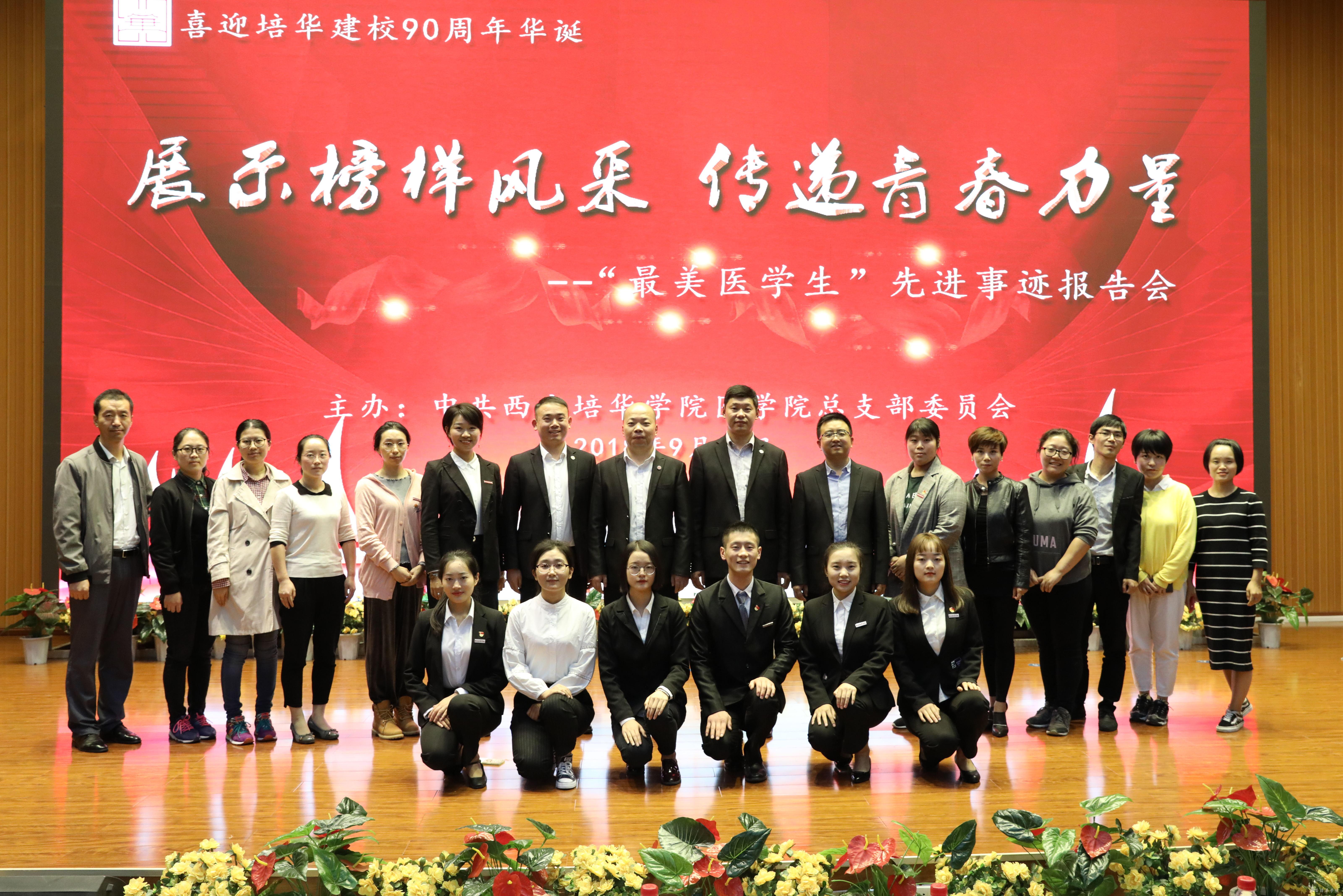 为贯彻落实习近平总书记对“弘扬爱国奋斗精神,建功立业新时代”做出的重要指示,根据中共中央组织部、中共中央宣传部关于在广大知识分子中深入开展“弘扬爱国奋斗精神、建功立业新时代”活动的通知,按照我省及各上级有关部门的会议指示精神,医学院党总支于9月28日在维之图书馆报告厅成功举办“展示榜样风采,传递青春力量”----最美医学生先进事迹报告会。此次报告会旨在传播社会主义核心价值观,挖掘我院优秀学生典型事迹,发挥典型人物的模范带头作用,以榜样的力量引领全院学生奋发进取。