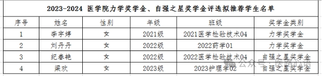 经学生自主报名、学院联评的方式,医学院2023-2024学年力学奖学金,自强之星奖学金评选结果公示如下: