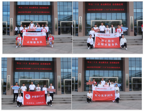 今年,医学院共14支重点队伍,近百名师生到省内多地广泛开展有意义、有内涵、有特色的社会实践活动,结合学习贯彻习近平新时代中国特色社会主义思想主题教育,引导和帮助广大青年学生在与现实相结合的“大思政课”中“受教育、长才干、作贡献”,把课堂教学与社会实践相结合,让同学们在拼搏中绘就奋斗最美、亮丽闪光的青春画卷。