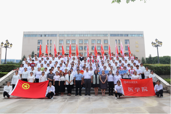 医学院共计14支暑期“三下乡”社会实践团队接过队旗,表达了对此次实践活动的决心与信心。我们将怀着自己的梦想,揣着学校的期望,担负起医学生应有的使命和责任。我们将以自己的实际行动推进美丽乡村建设,助力乡村振兴发展,以实际行动献礼建党102周年,展现当代大学生的良好精神面貌和责任担当,为国家和社会的发展与进步贡献自己的青春力量。