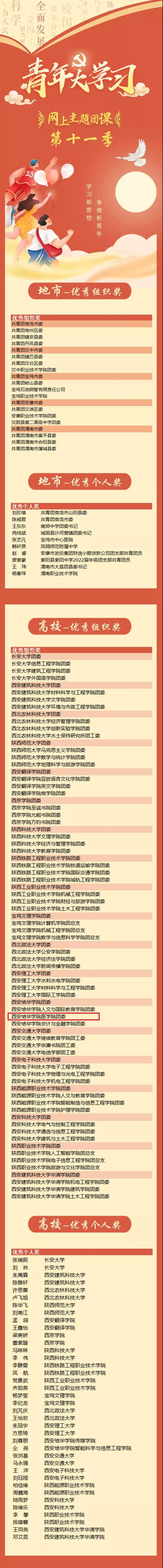 “青年大学习”网上主题团课是通过一系列小专题,和小伙伴们一起深入学习的平台。“奋斗是青春最亮丽的底色”、“幸福都是奋斗出来的”……相信这些金句大家都不陌生。习近平总书记在很多重要场合围绕“奋斗”作出了一系列深刻论述,尤其是在对青年的寄语中,“奋斗”始终都是高频词汇,成为党对青年一以贯之的重要要求。我院团委积极组织动员广大青年将“青年大学习”作为推进青年思想教育的重要学习平台,积极学习,大力推进团组织在青年学生中的引领力。西安培华校园医学院团委荣获青年大学习优秀组织单位。