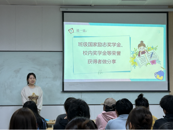 同时,部分班级邀请班级国家励志奖学金、校内奖学金等荣誉获得者做分享,分享学习心得、学习方法,更好的形成模范带头作用,带动班级同学共同努力,为创造良好的班风学风奉献自己的力量。