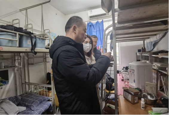 此次安全排查在医学院党委书记兼行政副院长史立军、党委副书记何丽的带领下,2024届毕业班全体辅导员共同深入学生宿舍进行全面细致的检查。老师们重点检查了宿舍内的电器设备、私拉乱接电线、具有安全隐患的设施以及其他违规现象,并走访了解毕业生实习就业情况,进行答疑解惑。