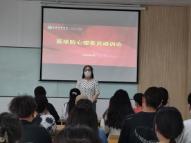 医学院党委副书记何丽老师也对心理委员工作的重要性做出进一步强调,她指出心理委员要善于发现身边同学的行为异常的情况。心理委员作为心理健康的传递者,肩负着关注班级同学心理健康状态、及时上报特殊情况、提供心理健康资源等重任。同时对就医学院潜能辅导站工作给予肯定,同时宣读医学院潜能辅导站学生助理团聘任人员及分配事项,并指出老师同学要配合完成好工作,希望医学院潜能辅导站能为学生的心理健康护航,学生助理团成员能够成为学院心理健康指导老师的得力助手。