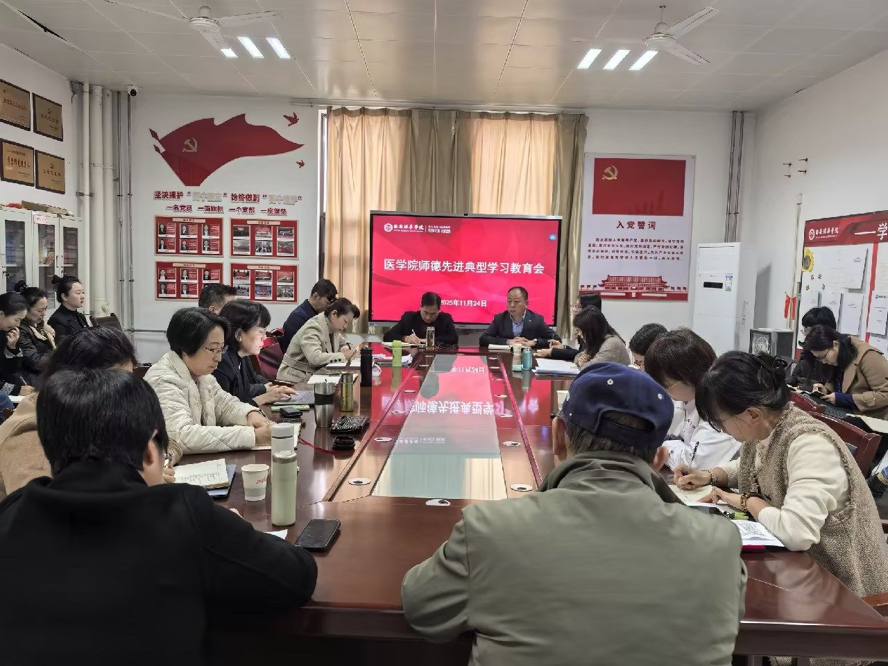 为持续深入学习贯彻习近平总书记关于教育的重要论述,巩固拓展师德师风建设成果,发挥先进典型的示范引领作用,激励全院教师深刻践行教育家精神,勇担为党育人、为国育才的光荣使命,2025年11月24日,医学院在至善楼8330会议室隆重举办2025年师德先进典型专题报告会。会议由医学院党委书记兼行政副院长史立军主持。