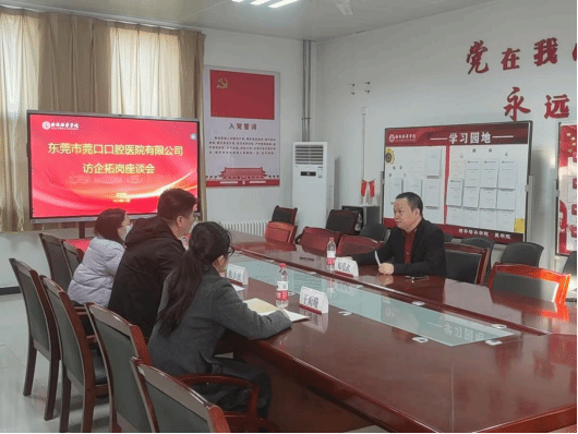 为深入贯彻落实“访企拓岗促就业”专项行动部署,深化产教融合、推动医教协同育人,近日,东莞市莞口口腔医院有限公司代表莅临我院开展访企拓岗交流座谈,双方围绕人才培养、实习就业、产学研合作等核心议题深入沟通,共绘校企协同发展新蓝图。