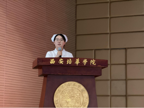 大会第一项,医学院常务副院长扈国栋教授致词。扈院长首先指出,护士节是弘扬护理职业精神的重要时间节点,促使我们共同思考护理、护理学科和护理事业在健康中国、社会发展、民众照护的重要作用及发展。最后,扈院长特别送给同学们三句标语:“端正训练作风、磨炼战斗意识、锤炼不磨精神”,并希望大家能够深深铭记在心,将其贯彻到学习、工作和生活的每一个细节之中。