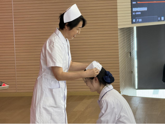 大会第四项,举行护理授帽仪式。洁白的燕帽,象征着圣洁的天使;燃烧的蜡烛,象征着“燃烧自己,照亮他人”。在这庄严而神圣的时刻,专业带头人化前珍教授、刘芳娥教授为培华护理专业学生代表佩戴燕帽。戴上象征着“白衣天使”的洁白燕尾帽,接过象征着燃烧自己,照亮他人”的红烛,将毕生精力奉献给护理事业!