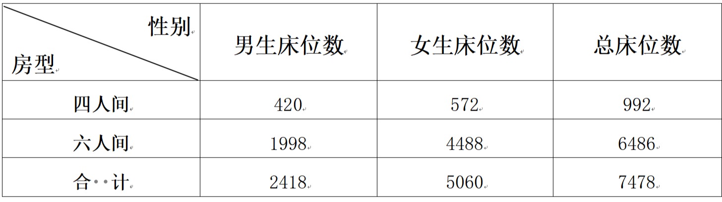 网上发放全部四人间和六人间宿舍,男生发放床位数为录取男生总人数的100%,女生发放床位数为录取女生总人数的96%,原则上2022级新生须在规定时间内进行网上选宿。