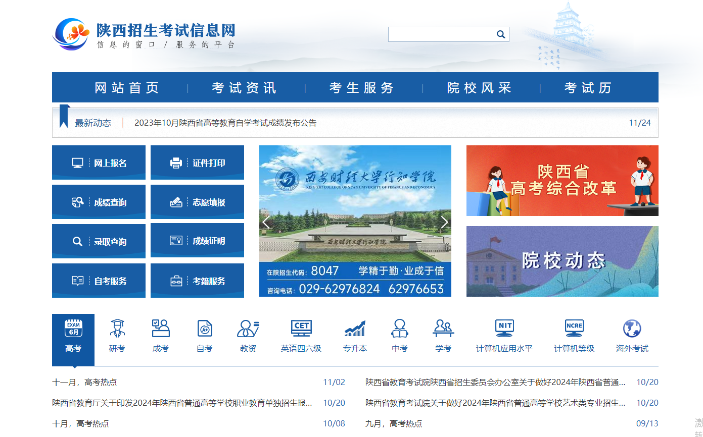 陕西省教育考试院门户网站(网址:https://www.sneea.cn)
