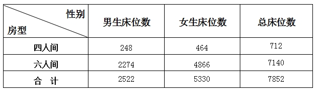 我校共有23栋学生社区,每栋楼共六层,每层有30—38间宿舍不等。学生社区房型分为四人间、六人间两种。现可为2024级新生准备的床位情况如下: