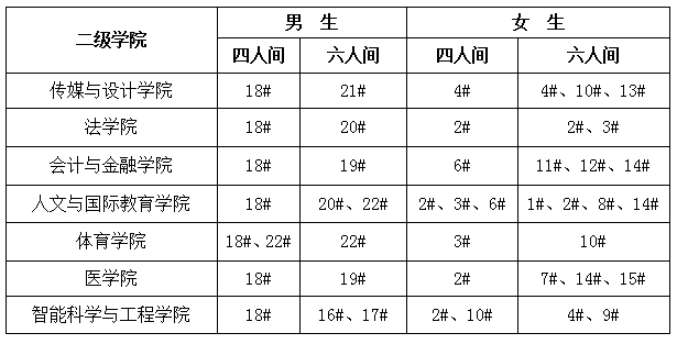 二、各二级学院新生宿舍分配情况如下: