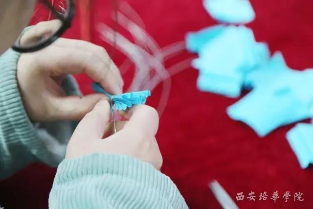 “快瞧,学姐的手好巧,做出来的花和真的一样呢”,“学姐,我们可以学习这个吗?”,“当然啦,我教你”