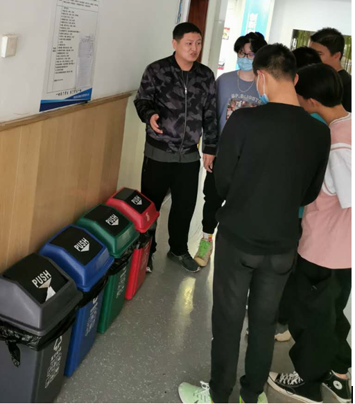 班会结束后,老师将同学们带至分类垃圾桶旁边,向学生传授垃圾分类的小技巧: 红色代表有害物质,绿色代表厨余垃圾,蓝色代表可回收再利用垃圾,黄色代表医疗废物专用垃圾桶,灰色代表除了有害物质跟可回收物质以外的垃圾,砖瓦、陶瓷、渣土等难以回收的废弃物,这类物质一般会被焚烧、掩埋等处理。