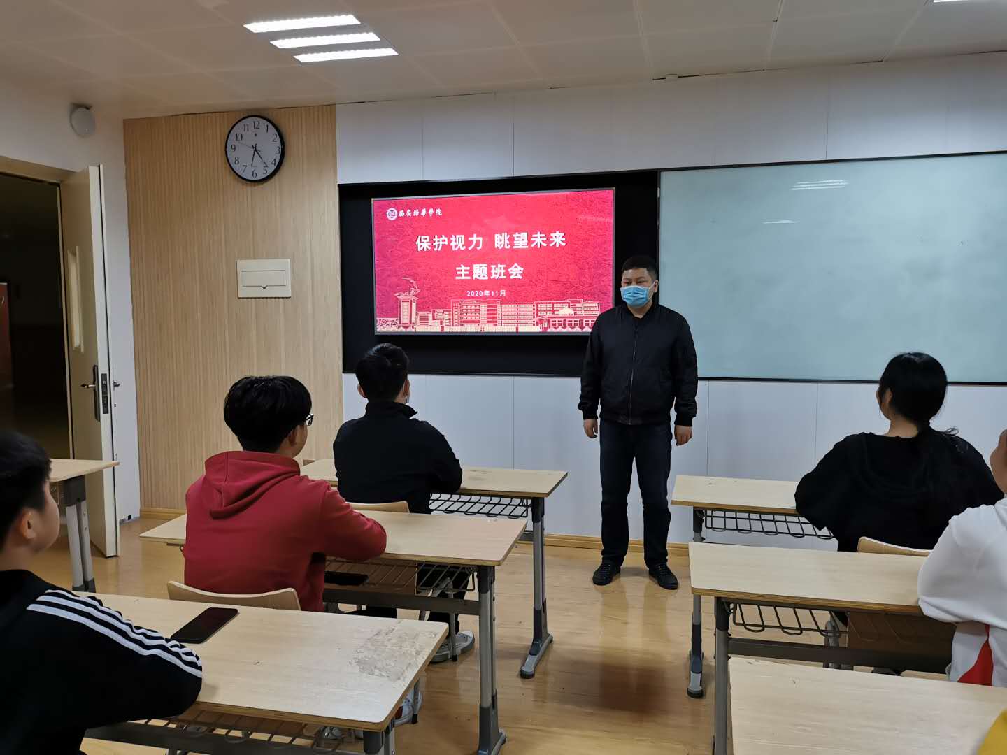 根据《陕西省综合防控儿童青少年近视实施方案》、《陕西省教育厅办公室 陕西省卫生健康委员会办公室关于开展近视防控宣传教育月活动的通知》等文件要求,我校于2020年11月1日在格物楼召开“保护视力 眺望未来”主题班会。