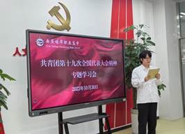 为深入贯彻落实共青团第十九次全国代表大会精神,引导团学干部传承红色基因、勇担青春使命,10月30日,我校团委召开了共青团十九大精神专题学习会,团委书记蔡国强及团学干部参会。