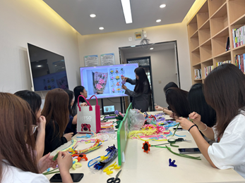 同学们在老师的指导下开始制作,五颜六色的扭扭棒在指间穿梭,提前备好的原料经过同学们的精心处理,变成了一件件精美的工艺作品,完成作品的成就感洋溢在同学们的脸上,活动现场气氛温馨而热烈。