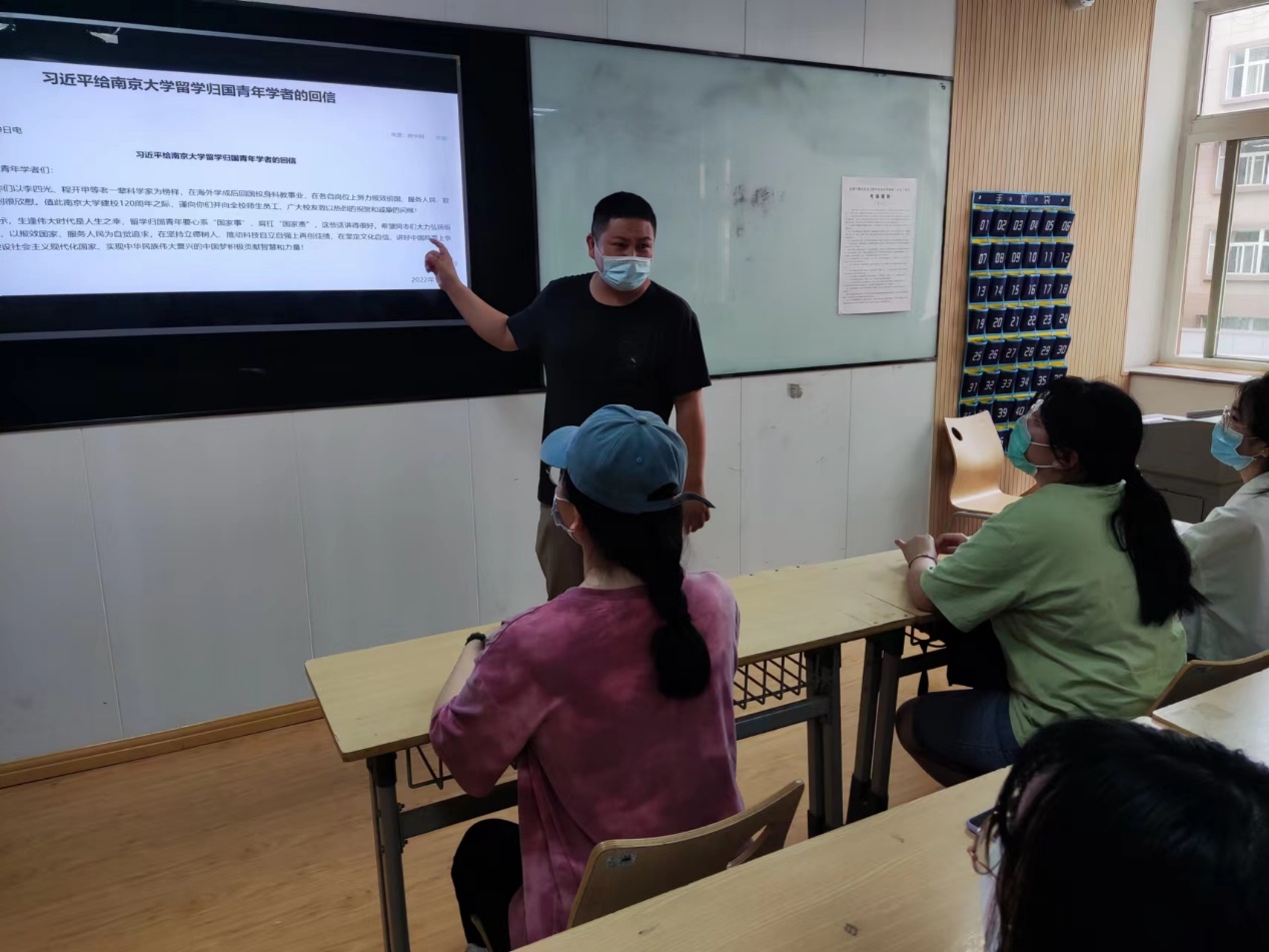 班主任也积极组织学生开展专题学习会,向学生宣读习近平总书记给南京大学留学归国青年学者重要回信,教育引导广大青年学者自觉做“两个确立”的坚定信仰者和忠实践行者,以李四光、程开甲等老一辈科学家为榜样,以报效国家和服务人民为自觉追求,为祖国发展民族振兴贡献青春力量。