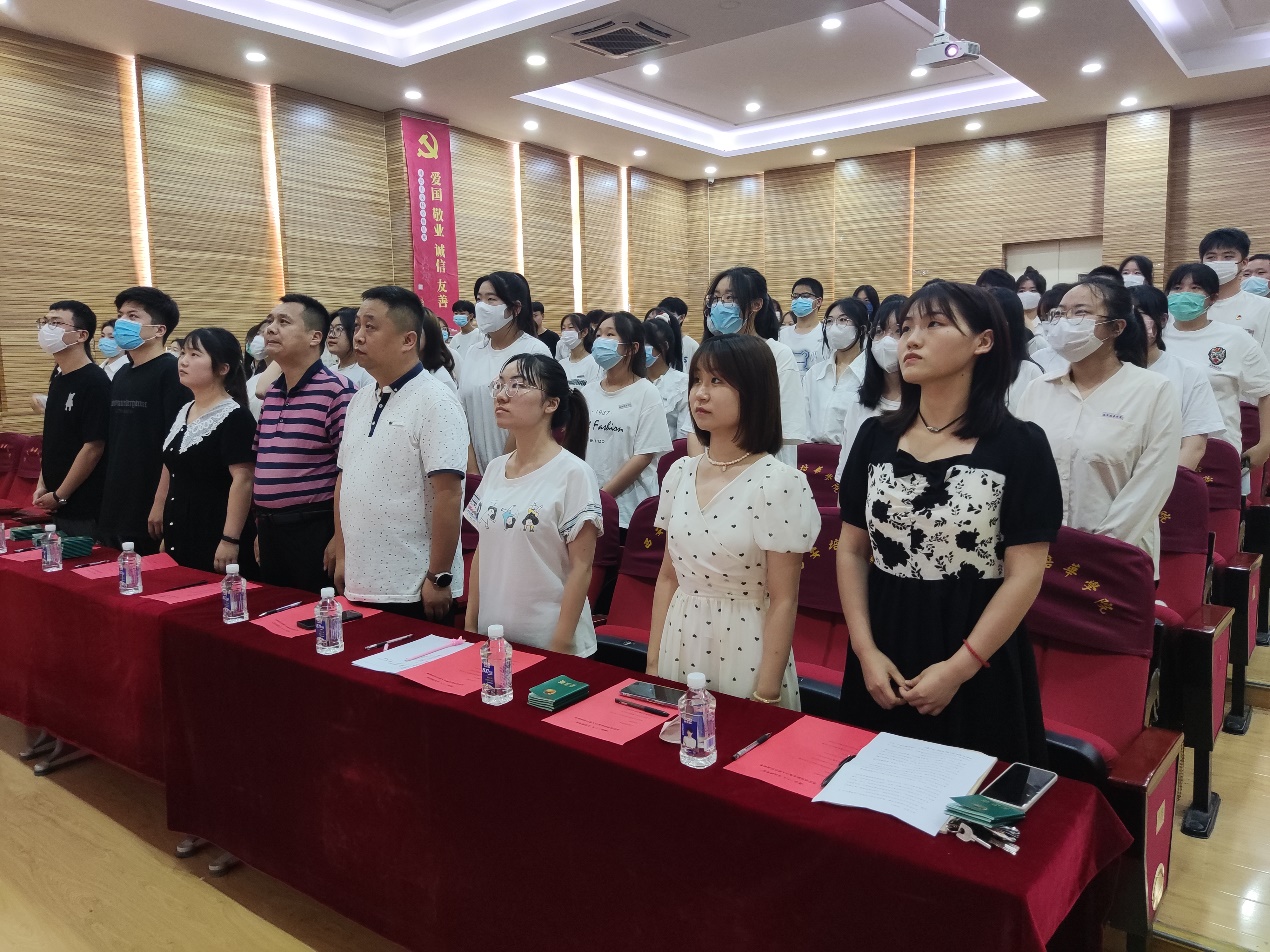 大会伴随着庄严嘹亮的共青团歌正式开始,团委书记蔡国强宣读了新团员名单,对新团员的加入表示祝贺和欢迎,希望新团员们树立远大抱负和坚定的理想信念,发挥好示范引领和模范带头作用,在学习和生活上为同学们树立良好的榜样,努力成为德智体美劳全面发展的时代青年。