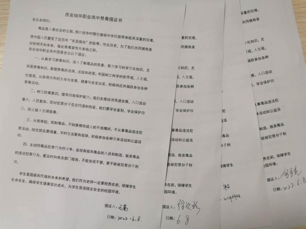 为了提高职工对于禁毒工作的重视程度,我校组织职工观看了禁毒宣传视频,了解毒品的危害和如何有效预防等知识,并在会后组织职工在禁毒倡议书上签字,表达拒绝毒品,珍爱生命的决心和承诺。
