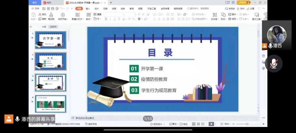 为进一步提高学生安全防范意识,切实落实校园疫情防控相关要求,确保开学工作平稳有序进行,按照《西安市长安区教育局关于做好2022年秋季开学疫情防控工作的通知》及培华职高教通处《培华职业高中2022-2023第一学期开学通知》文件要求,我校于8月28日组织班主任召开了“开学第一课”线上主题班会。