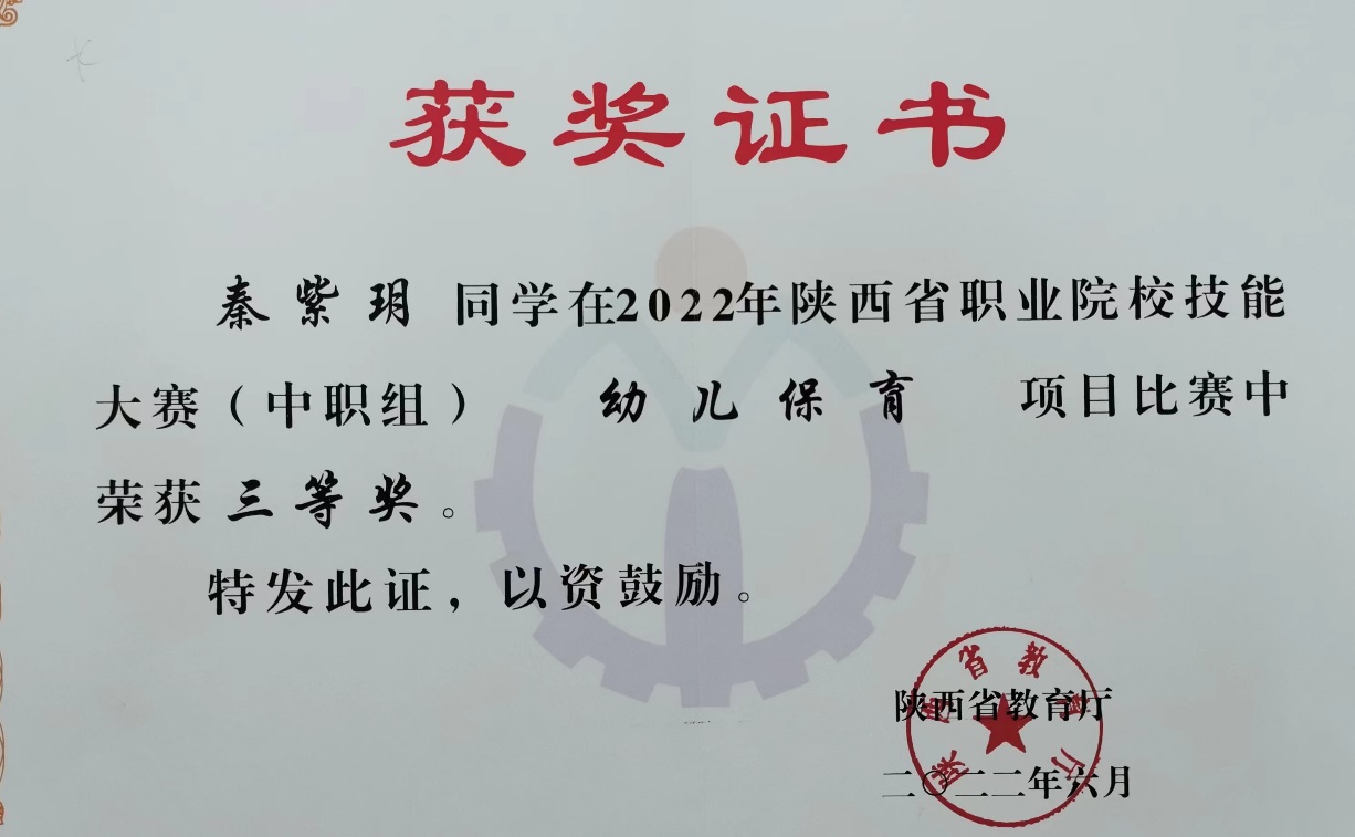 金秋九月,喜报频传,辛勤的耕耘终将迎来丰收。我校秦紫玥同学荣获2022年陕西省职业学校技能大赛三等奖,彰显了我校学子风采。