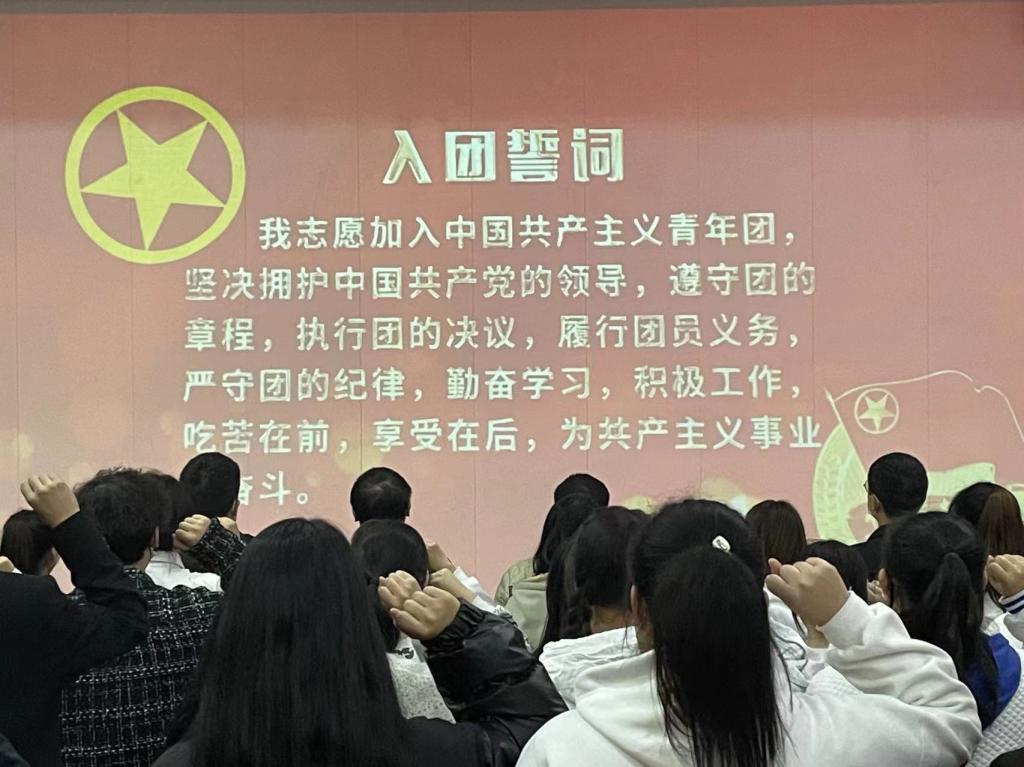 大会为新入团员颁发了团员证和团徽,为表现优秀的团员颁发了荣誉证书,也为新任学生干部颁发了聘书,以此激励青年学子追求进步、努力奋斗,再创辉煌。随后团委副书记何泽晨带领新团员进行入团宣誓。