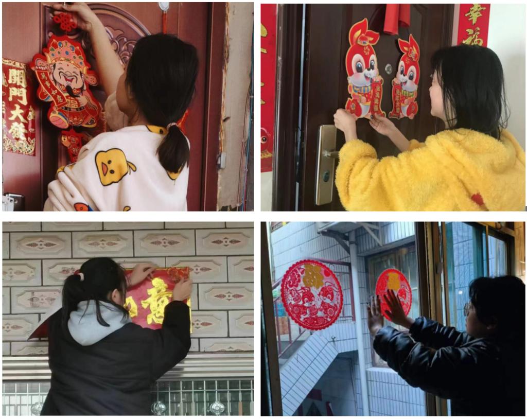 为了营造浓厚的节日氛围,引导学生充分感受传统民族文化的精神内涵,度过一个充实、快乐的春节,我校组织学生开展贴春联活动。贴春联是过年的重要习俗,它以对仗工整、简洁精巧的文字描绘美好形象,表达了人民对美好生活的向往和期盼。同学们纷纷亲自上阵,贴对联、挂灯笼、贴福字、挂福件,营造了浓厚的节日氛围。