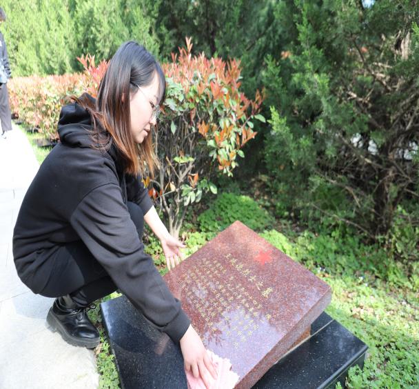 烈士陵园内安息着英勇就义的革命烈士王德安、抗日时期的民族英雄刘桂五、战斗英雄秦富德、抗美援朝英雄侯天佑等革命先烈,师生来到烈士墓碑前,俯身擦去灰尘,追思先烈事迹,表达无限崇敬之情。