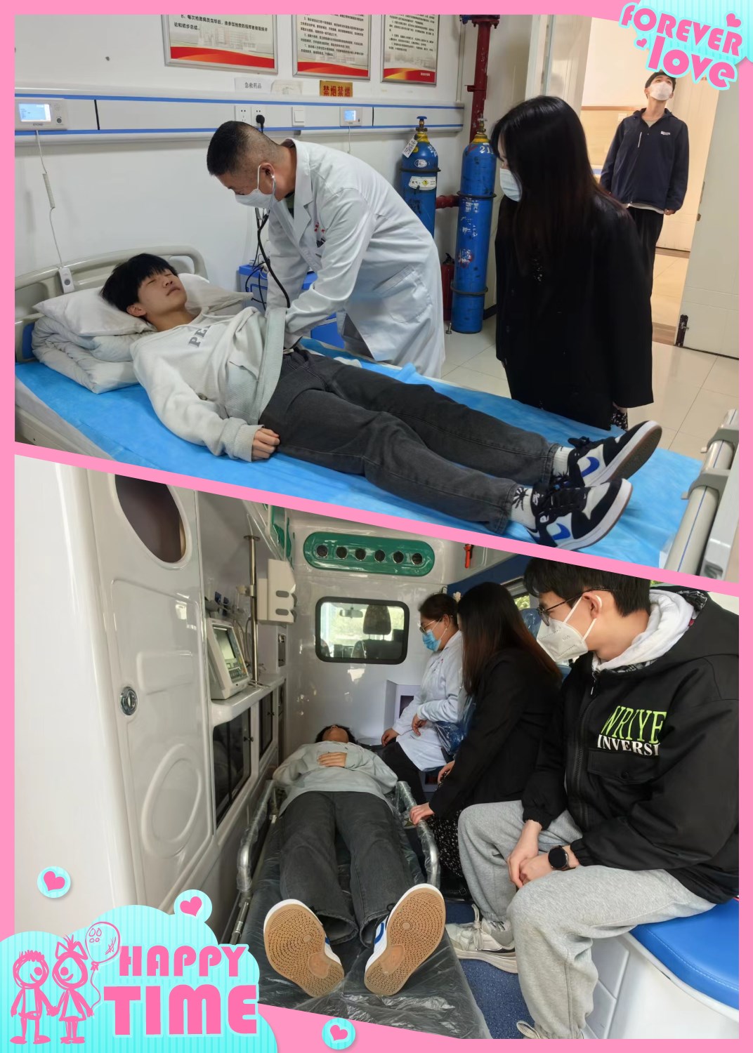 校医通过检查初步判断为疑似食物中毒,立即安排救护车将学生送往医院。