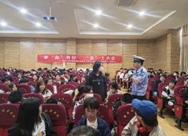 代警官结合近期交通事故案例,展示了交通违法的危害性和造成的严重后果。详细讲解了日常交通安全常识和注意事项,和学生进行了亲密的互动交流,营造了良好的活动氛围,切实提高了学生们的安全意识。