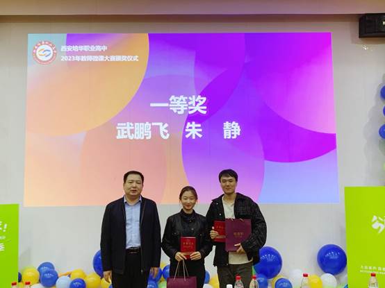 大赛评委会通过初步筛选、作品审核、教学展示等环节,评选出了获奖教师名单。一等奖:武鹏飞,《唯物主义与唯心主义》;朱静,《侧手翻》;二等奖:董秋菡,《幼儿歌曲弹唱》;杨猛,《引体向上辅助训练》;师梦琳,《空间直角坐标系》,我校遴选出优秀作品参加西安市微课程教学设计比赛。