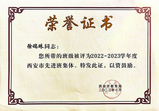 在2023年度西安市“三好学生”“优秀班干部”和“先进班集体”的评选活动中,我校叶向东、李泽治、王颖同学荣获西安市“三好学生”称号,艺术设计与制作211班荣获西安市“先进班集体”称号。