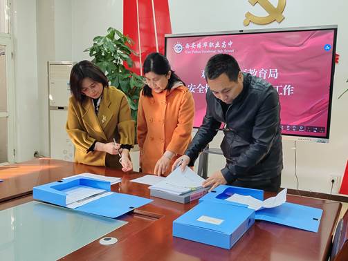 检查组认真查阅了我校安全档案资料,并就安全工作开展情况与我校负责安全工作的老师进行深入沟通交流。