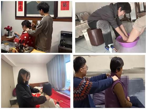 同学们自发为父母捏捏腿、揉揉肩、捶捶背、洗洗脚,简单的举动让父母倍感温暖,让父母劳累了一天的身心得到慰藉和放松。