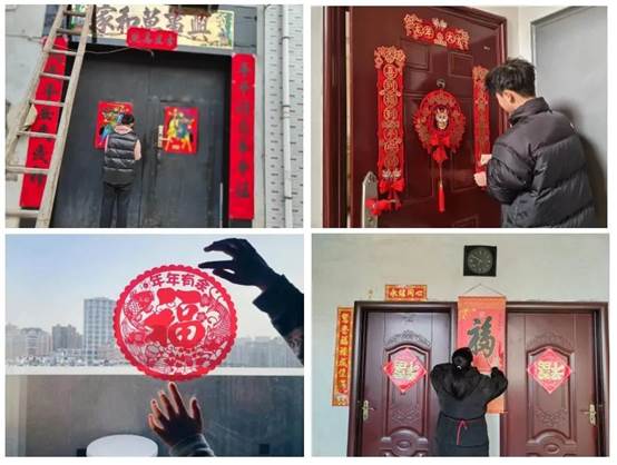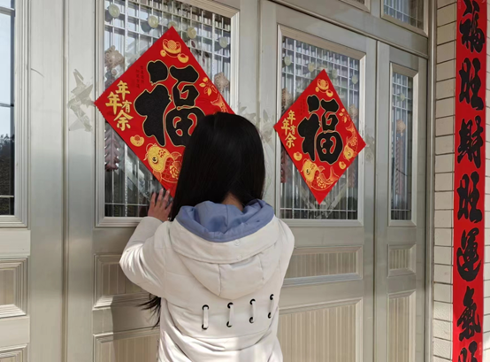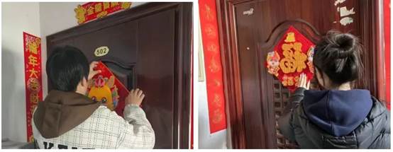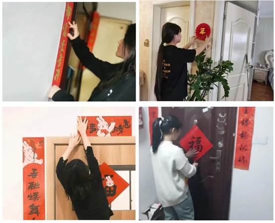贴春联是过年的重要习俗,表达了人民对美好生活的向往和期盼。同学们纷纷亲自上阵,贴春联、挂灯笼、贴福字、挂福件,通过实际行动营造浓厚的节日氛围。
