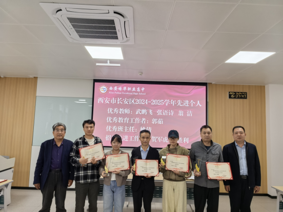 教学副校长雷保民宣读了西安市长安区教育局《关于表彰2024-2025学年度职成教工作先进单位和个人的决定》,我校荣获长安区职业学校"安全管理先进集体"荣誉称号,武鹏飞、张语诗等7位老师荣获“先进个人”荣誉称号。执行校长席小武向受到表彰的先进个人表示祝贺,希望获奖教师戒骄戒躁,秉持教育初心,发挥榜样力量,引领更多教师奋进向前,在新学期的教育教学工作中再创佳绩。