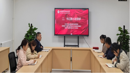 党支部书记席小武领学《习近平给全国特岗教师代表的回信》《教育部关于高校教师师德失范行为处理的指导意见》和《新时代高校教师职业行为十项准则》三个文件,加强师德师风。落实师德建设主体责任,对师德失范行为严肃处理。充分肯定特岗教师扎根乡村教育的奉献精神,勉励教师坚守教育初心,提高教书育人本领。要求教师将教书育人和自我修养结合,做到以德立身、以德施教。