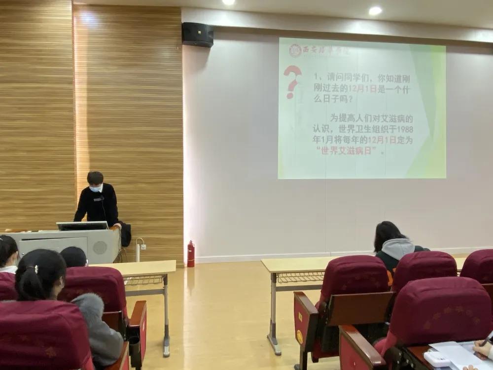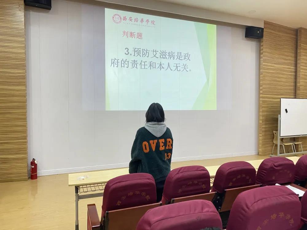 讲座现场,王泽阳为同学们全面讲解了艾滋病的致病原理、发病状况、传播途径、防治措施等重要知识。现场还通过有奖竞答的方式与同学们进行生动活泼的互动,同学们积极参与、踊跃抢答,通过竞答的活动让同学们更加深刻的认识到了艾滋病的危害性。